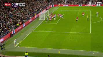 第13分钟,纽卡左侧角球机会,吉马良斯抢前点头球攻门,拉门斯稳稳守住近角↓